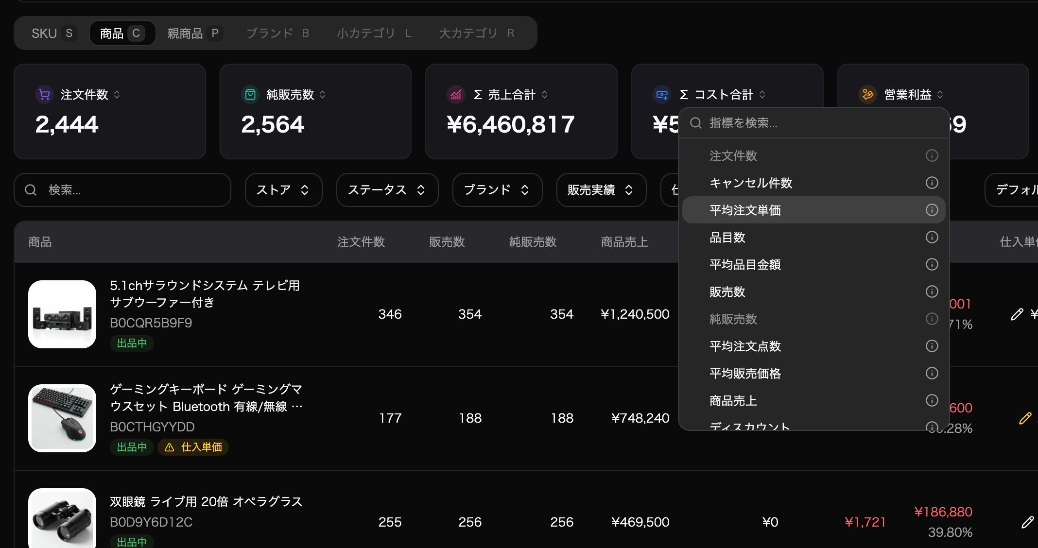 TACOS・利益率など、一部の指標はサマリーカード・グラフへの対応を準備中です。近日中に反映予定です